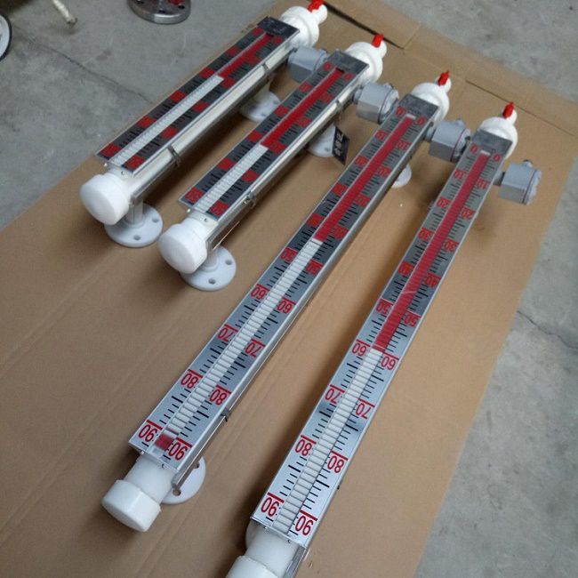 磁翻板液位計是本公司引進、吸收國外同類產(chǎn)品,并加以吸收、消化、提高,按原化學工業(yè)部頒布的磁性液位計標準T21584-95研制生產(chǎn)的產(chǎn)品。可用于各種塔、罐槽、球形容器和鍋爐等設備的介質(zhì)液位檢測。該系列磁性液位計可以做到高密封,防泄漏和適應高壓高溫、腐蝕性條件下的液位測量,具有可靠的安全性,它彌補了玻璃板(管)液位計指示不清晰,易破碎的不足,不受高、低溫度劇變的影響,不需多組液位計的組合。全過程測量無盲區(qū),顯示醒目、讀數(shù)直觀,且測量范圍大。特別是現(xiàn)場指示部分,由于不與液體介質(zhì)直接接觸,所以對高溫、高壓、高粘度、有毒有害、強腐蝕性介質(zhì),更顯其優(yōu)越性。因此,它比傳統(tǒng)的玻璃管,板式液位計具有更高的可靠性、安全性、先進性、實用性。