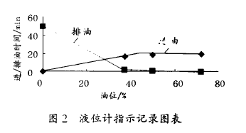 3.1 液位計(jì)構(gòu)造存在缺陷用人工進(jìn) F油試驗(yàn)時(shí),發(fā)現(xiàn)液位計(jì)指示的液位在O%-37%區(qū)間內(nèi)變化緩慢。如圖2所示,