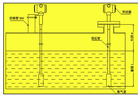 在容量比較法中標(biāo)準(zhǔn)罐本身就存在誤差,而幾何測量法是在空罐的情況下測量的,裝液后罐底量一定會有不同程度的沉降,所以要對其作進(jìn)一步的修正。這就要求能在線測量罐底量隨液位高度增加引起的變化。為此,本文提出了一種新的實(shí)時(shí)測量方法:酸液液位計(jì)法。