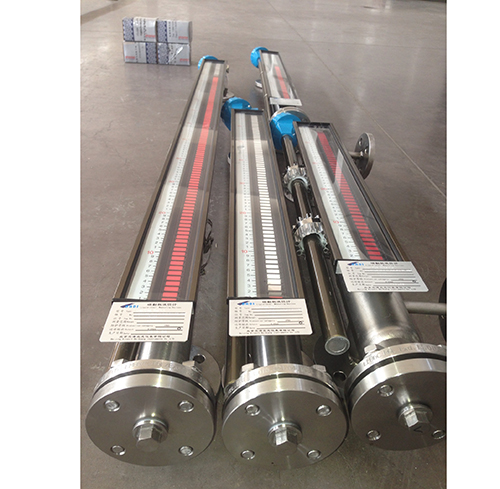 液位計根據(jù)浮力原理,浮子在測量管內隨液位的升降而上下移動,浮子內的永久磁鋼通過磁耦合作用,驅動紅、白色翻柱翻轉180’液位上升時,翻柱由白色轉為紅色,下降時,翻柱由紅色轉為白色,從而實現(xiàn)液位的指示。