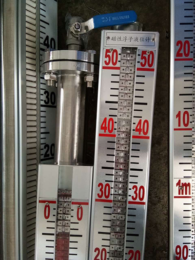 根據(jù)浮力原理,浮子在測量管內隨液位的升降而上、下移動,浮子內的永久磁鋼通過耦合作用,驅動紅、白色翻柱翻轉180°,液位上升時翻柱由白色轉為紅色,下降時由紅色轉為白色,從而實現(xiàn)液位指示。