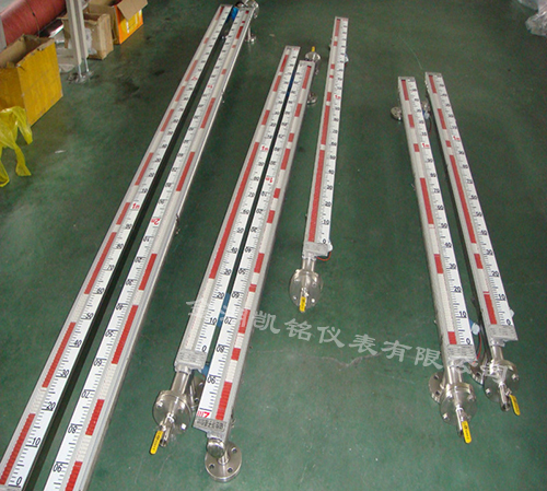 根據(jù)浮力原理,浮子在測量管內(nèi)隨液位的升降而上、下移動,浮子內(nèi)的永久磁鋼通過耦合作用,驅(qū)動紅、白色翻柱翻轉(zhuǎn)180°,液位上升時翻柱由白色轉(zhuǎn)為紅色,下降時由紅色轉(zhuǎn)為白色,從而實現(xiàn)液位指示。